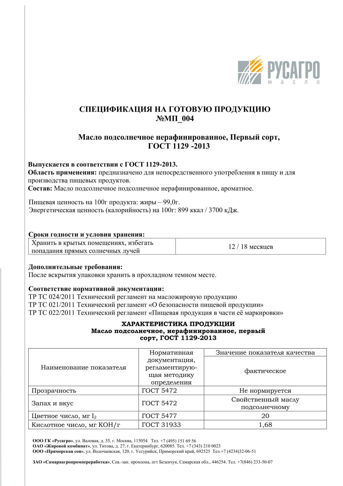 широкий ассортимент продукции: сырое, рафинированное, гидратированное и