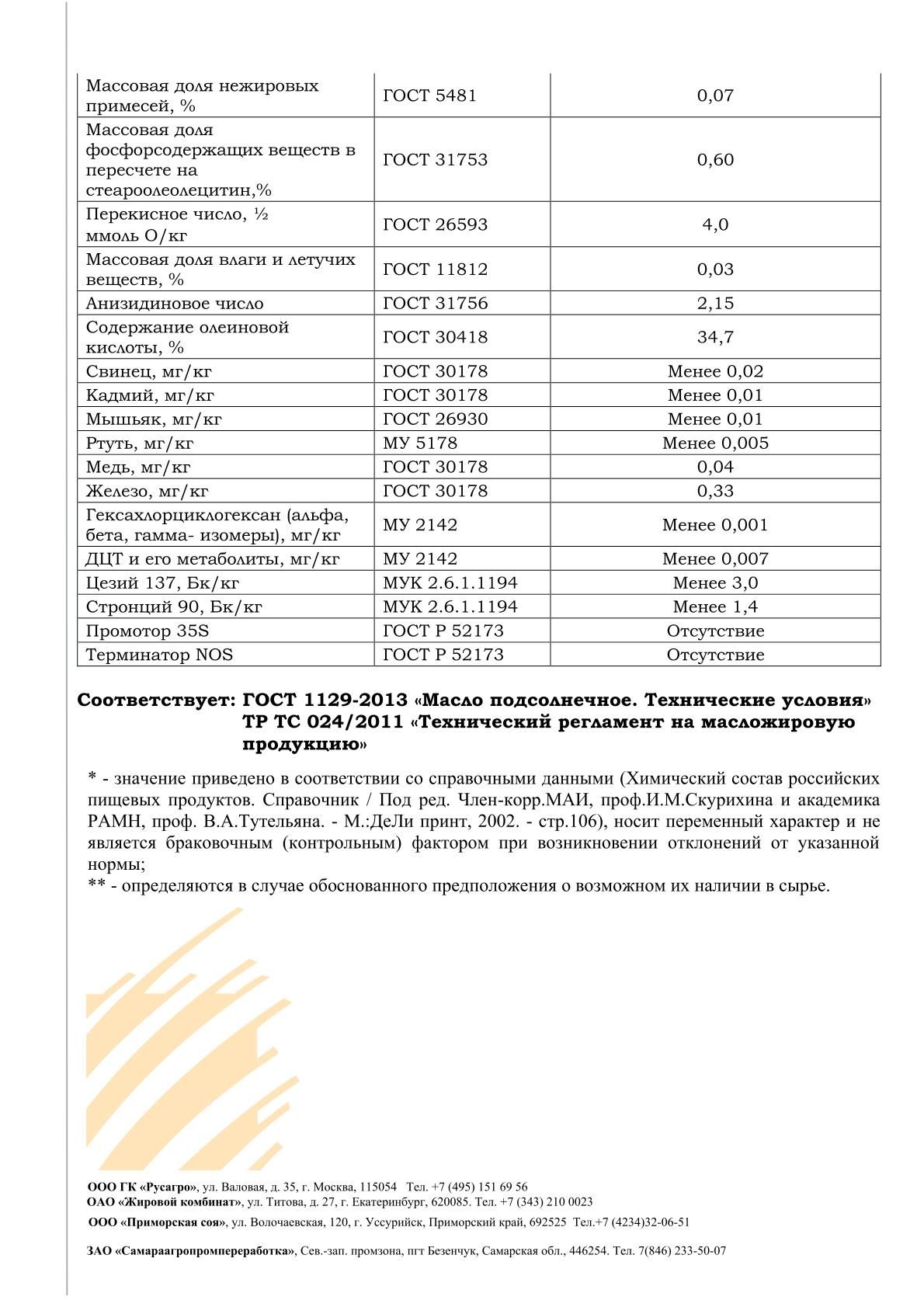 ГОСТ 1129-2013, стандартам ISO 22000, HACCP