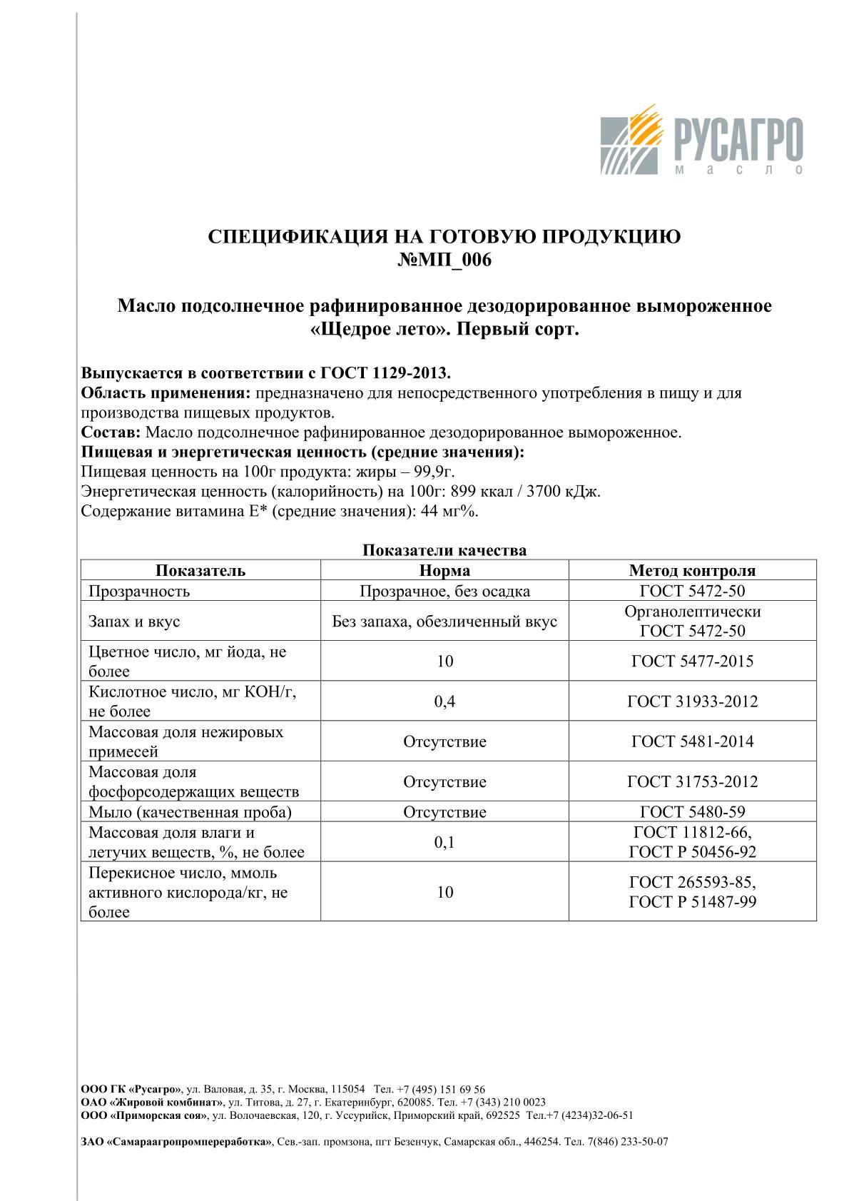 широкий ассортимент продукции: сырое, рафинированное, гидратированное и